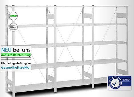 Höhe 2000 mm mit 5 Böden – Profile und Böden mit AntiBac®-Beschichtung (weiĂź – ähnlich RAL 9010) |